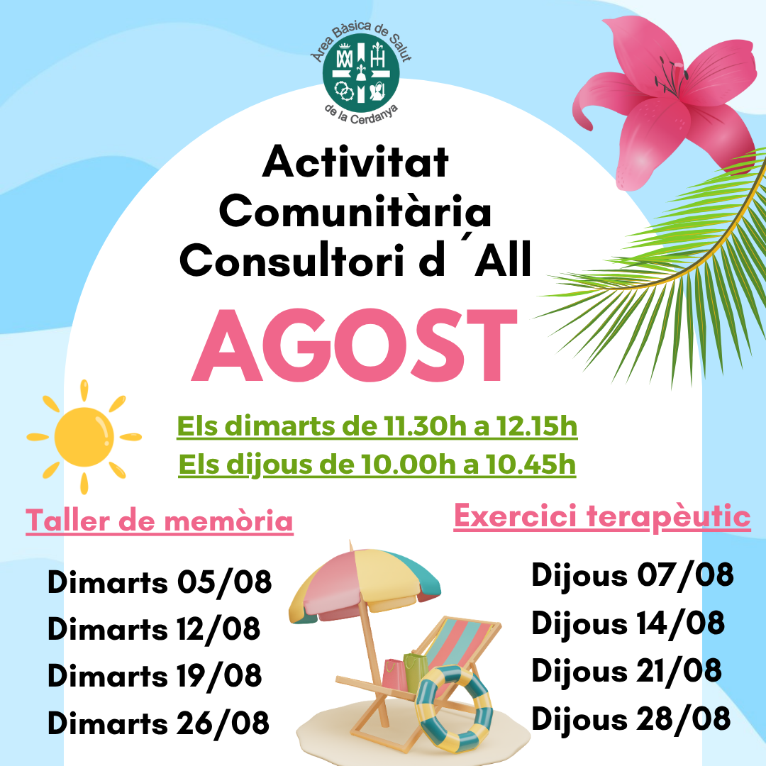 Actualitat, Agenda Activitat Comunitària Consultori d´All 17/07/2025 - 31/08/2025 AGOST 2025 < Entrada AnteriorEntrada Posterior >