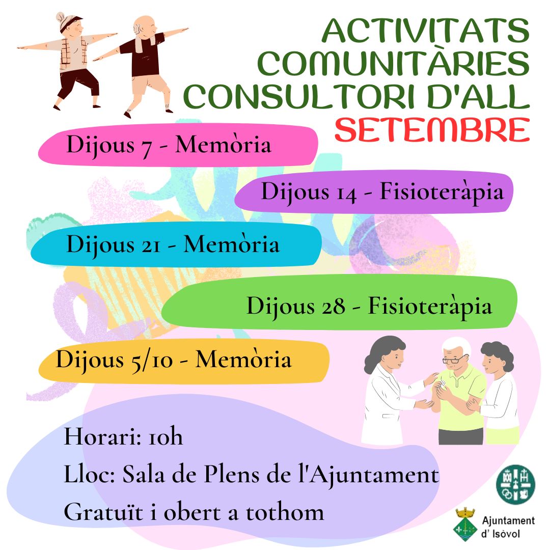 A continuació us anunciem les activitats que hi hauran al consultori d’All aquest mes de setembre.