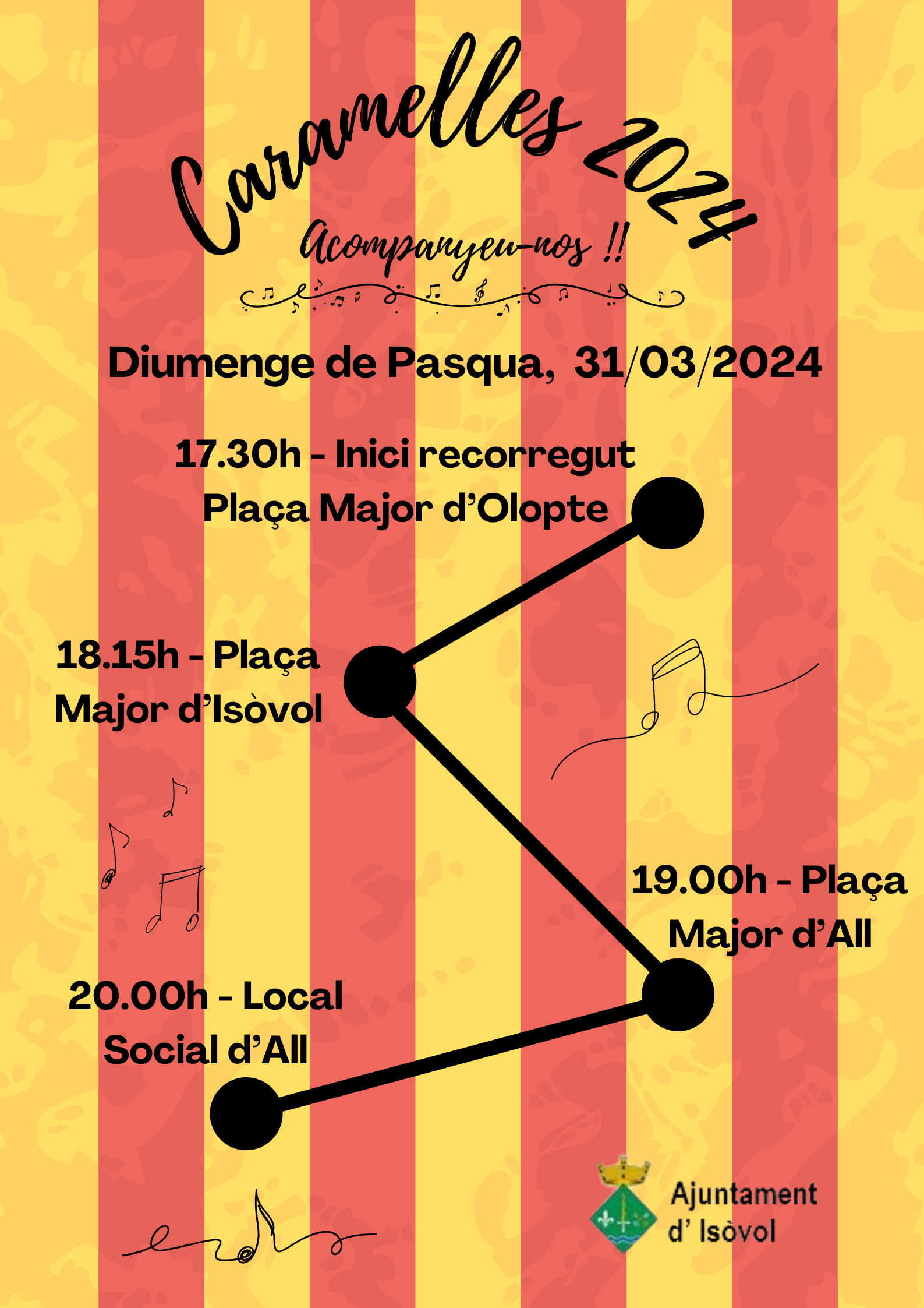 Agenda Cantada de Caramelles 2024 Diumenge, 31 de març a les 17:30h | Plaça Major d'Olopte, Isòvol i All i finalitza al Local Social d'All < Entrada AnteriorEntrada Posterior >