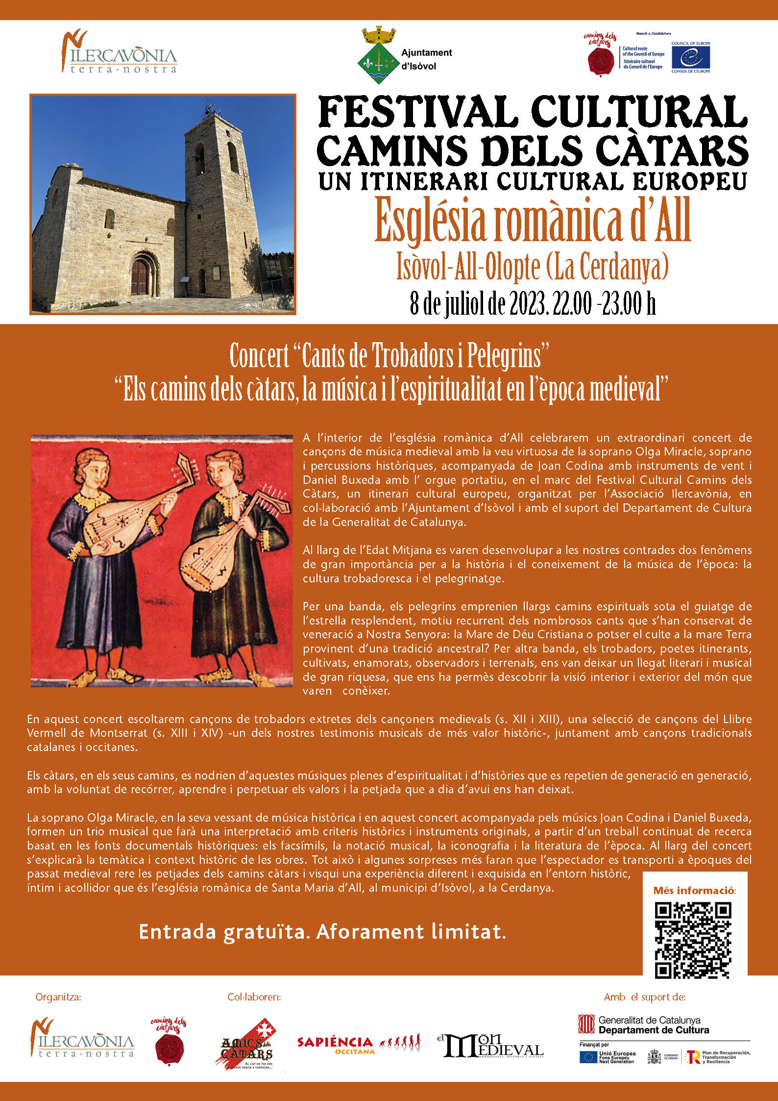 Actualitat, Agenda CONCERT “CANTS DE TROBADORS I PELEGRINS”, DINS DEL FESTIVAL CULTURAL “ELS CAMINS DEL CÀTARS” Dissabte, 8 de juliol de 2023 | Església Santa Maria d'All * Per veure millor la informació, cliqueu damunt la imatge. < Entrada AnteriorEntrada Posterior >
