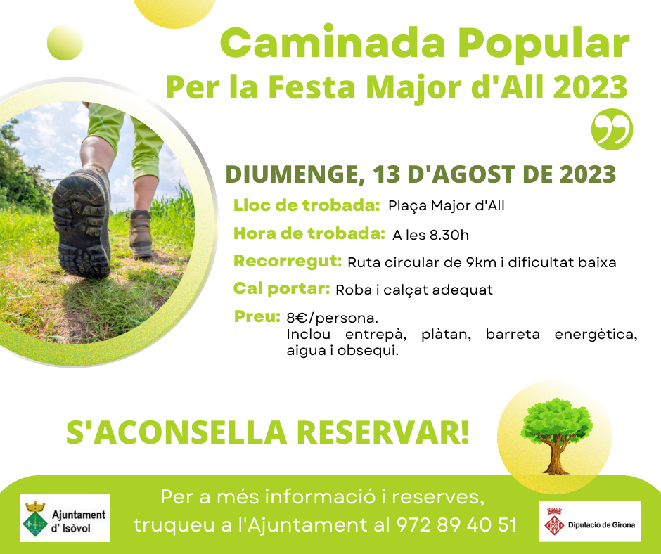 CAL RESERVAR: per a la caminada popular i per el dinar popular del diumenge 13 d’agost.