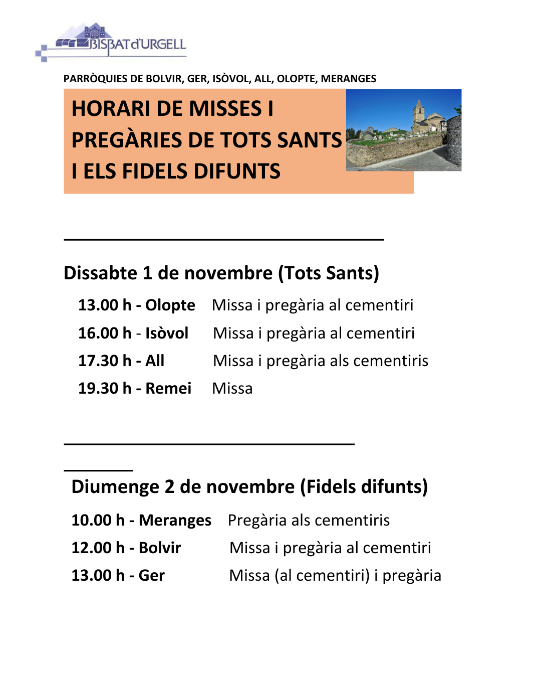Actualitat, Agenda HORARIS DE MISSES I PREGÀRIES DE TOT SANTS I ELS FIDELS DIFUNTS Dissabte, 1 i diumenge, 2 de novembre de 2025 | Cementiris del municipi < Entrada AnteriorEntrada Posterior >