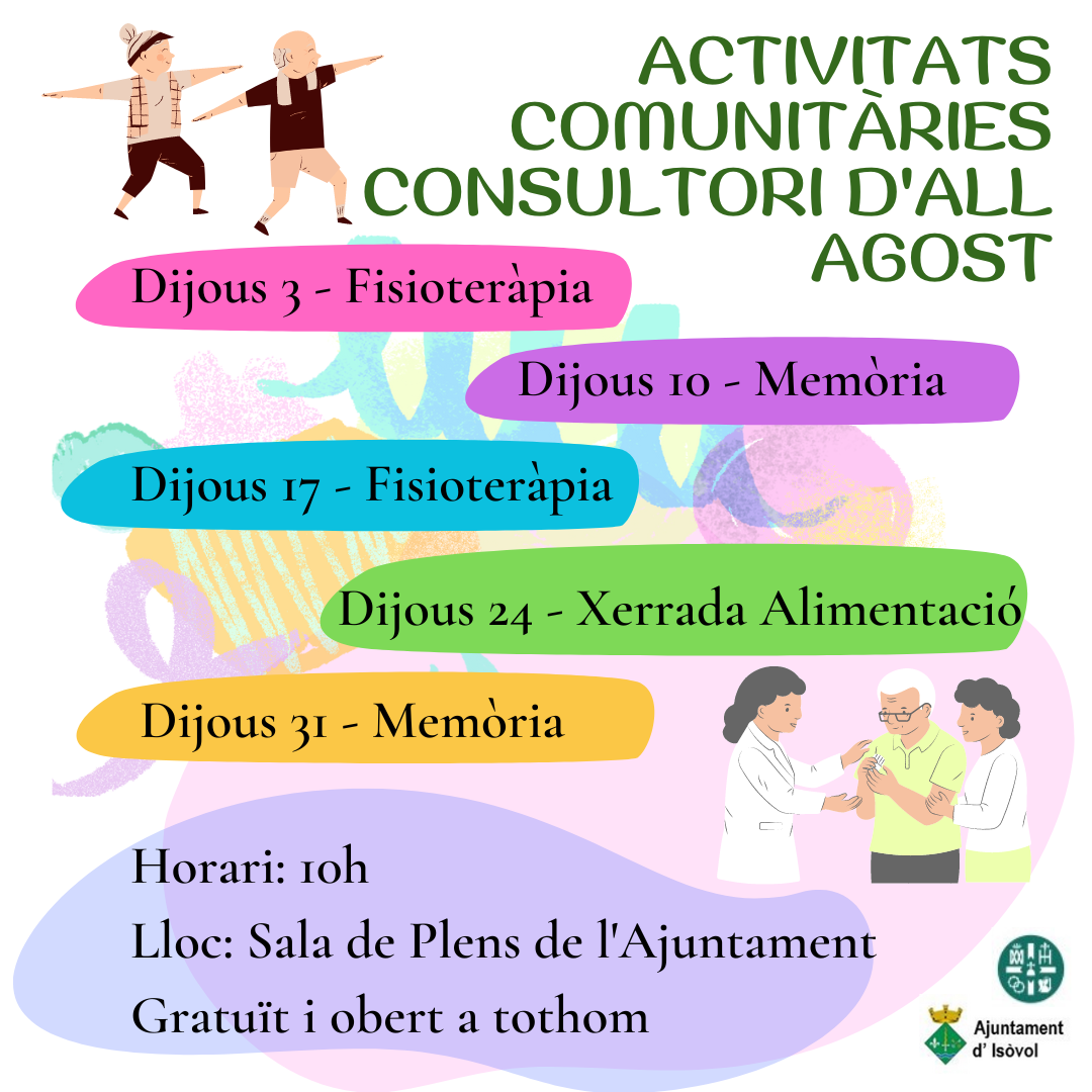 Us presentem les activitats comunitàries que oferim al consultori d’All per aquest mes d’agost.