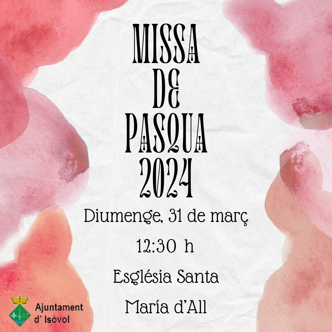 Agenda Missa de Pasqua 2024 Diumenge, 31 de març a les 12:30h | Església Santa María d'All < Entrada AnteriorEntrada Posterior >