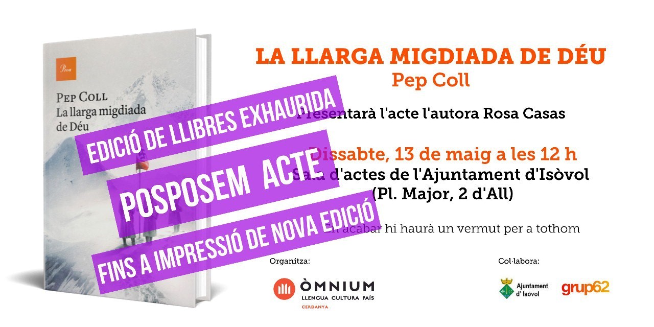 AJORNADA!! Presentació del llibre “La llarga migdiada de Déu” de l’escriptor Pep Coll