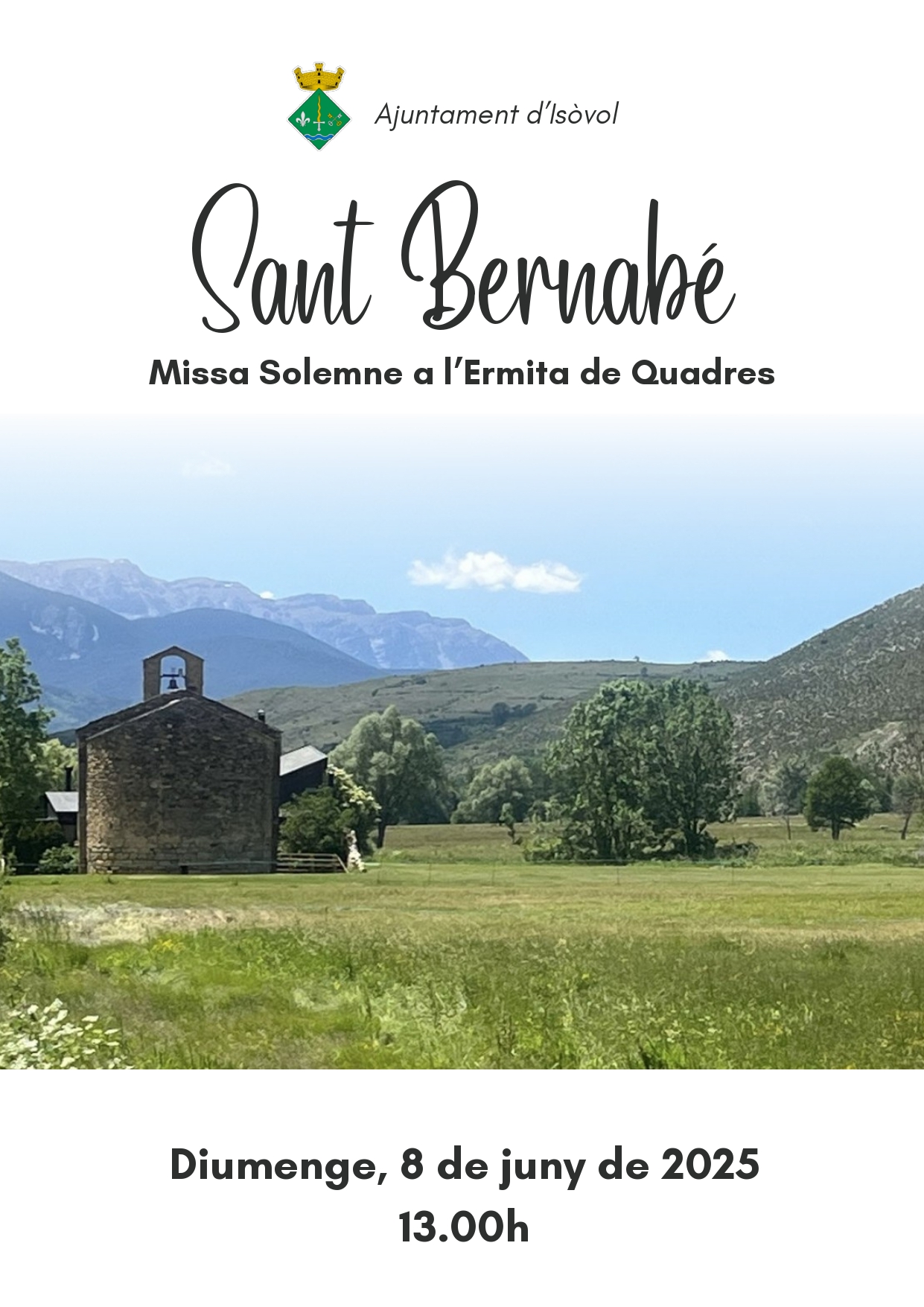Actualitat, Agenda Sant Bernabé 2025 04/06/2025 - 08/06/2025 Celebració de la missa de Sant Bernabé a l’ermita de Quadres. Dia: 8 de juny de 2025 Hora: 13.00 h < Entrada AnteriorEntrada Posterior >