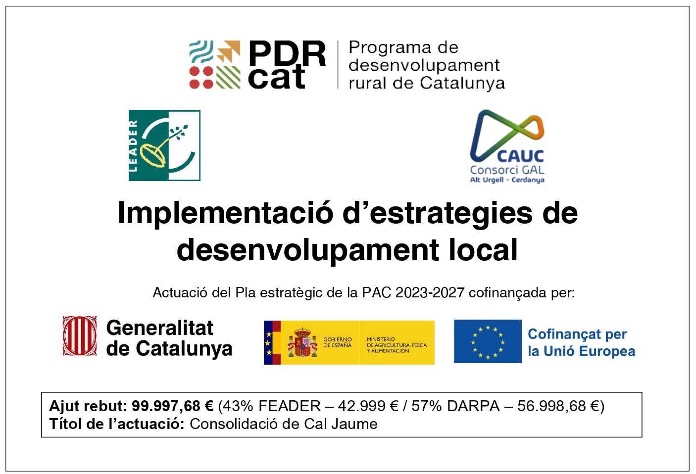 L’Ajuntament d’Isòvol ha estat beneficiari d’un ajut destinat a l’aplicació del desenvolupament local participatiu Leader, a l’empara l’Ordre ACC/252/2023, de 16 de novembre, per la qual s’aproven les bases reguladores, per al projecte “Millora de l’immoble interior de Cal Jaume” per un import de 99.997,68 €.