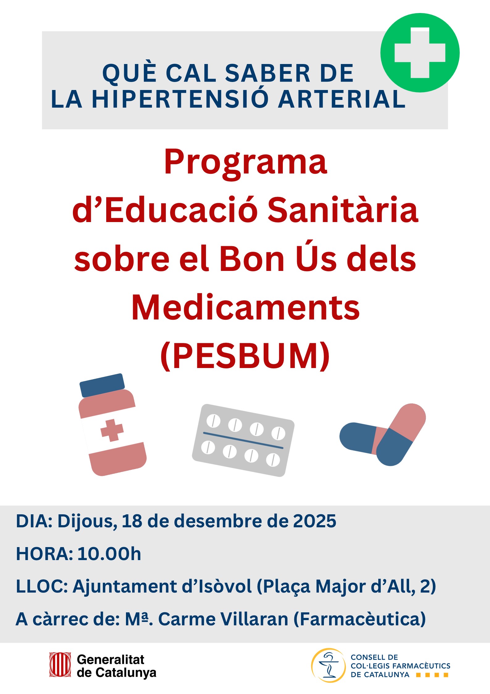 El proper dijous, 18 de desembre es durà a terme la tercera xerrada dins del Programa d’educació sanitària 2025.